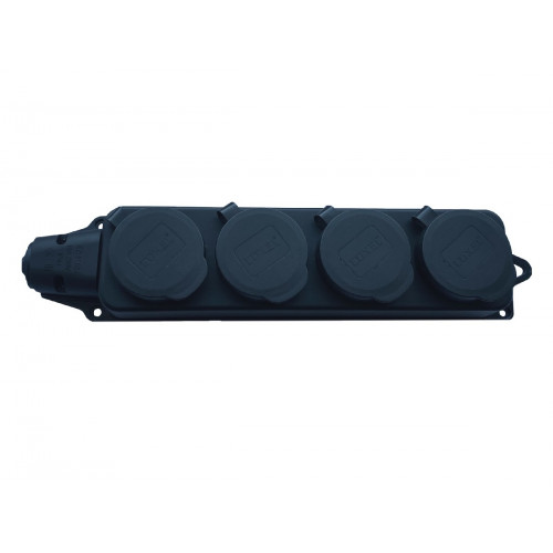 Колодка каучуковая на четыре гнезда с заземлением и крышкой IP-44 производства Luxel.