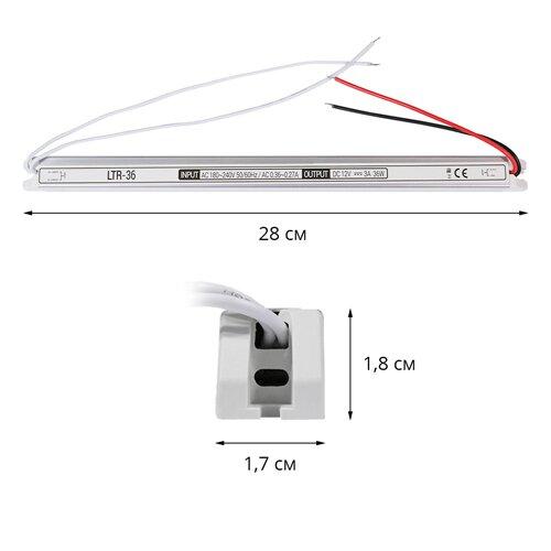 Блок питания OEM LTR-36 относится к серии стик-моделей, которые предназначены для максимально незаметного использования в интерьере. При небольшой ширине и толщине (17 и 18 мм соответственно) блок питания имеет длину 28 см. Данные изделия активно применяются при монтаже светодиодных лент на потолках и в подсветке зеркал. Блок питания рассчитан на мощность в 36 Вт и работает от переменного тока с напряжением 176-265 В. На выходе изделия потребитель получает 12 В постоянного тока с силой 3 А. Блок питания имеет класс защиты IP20 и относится к группе качества "Стандарт". Производителем предусмотрено исключительно пассивное охлаждение аппарата: корпус изделия выполнен из алюминия, хорошо проводящего тепло.