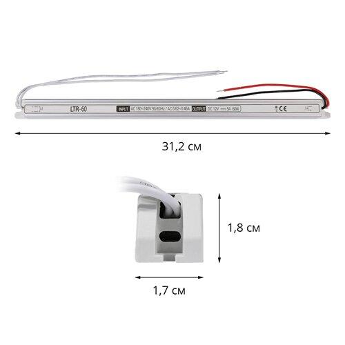 Блок питания OEM LTR-60 замыкает линейку изделий в форм-факторе «стик» и является самой длинной моделью – 31,2 см. Так же, как у других устройств из этой серии, его толщина составляет 18 мм, а ширина – ; 17 мм. Подобные блоки питания отлично подходят для обустройства скрытой подсветки мебели в гостиной и на кухне, организации освещения бытовой техники и потолка, а также в дизайне интерьеров. Выходное напряжение БП составляет 12 В постоянного тока силой 5 А. При этом устройство способно работать в широком диапазоне напряжений – от 176 до 265 В, обеспечивая мощность 60 Вт. БП соответствует классу защиты IP20 и относится к группе качества «Стандарт». Корпус блока питания выполнен из алюминия, что позволяет обеспечить достаточный теплоотвод от работающего оборудования.