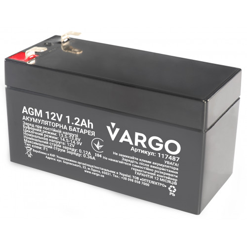 Cвинцово-кислотный аккумулятор AGM VARGO 12V 1.2AH (117487) 98х43х53(58) мм, Качество