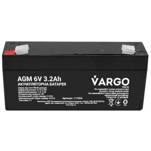 Cвинцово-кислотный аккумулятор AGM VARGO 6V 3.2AH (117454) 134x34,5x60(65) мм, Качество