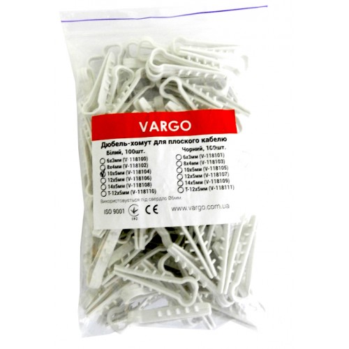 Дюбель-хомут VARGO для плоского кабеля 14х5мм, белый 100шт (118108), Качество