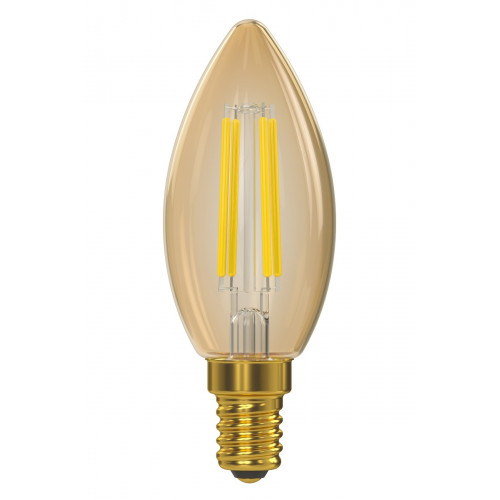 Светодиодная лампочка Luxel 076-HG C35 (Filament gold) – линейка ламп на основе технологии Filament, сочетающая преимущества ретро-дизайна и инновационных LED технологий. Традиционный вид лампы гармонично сочетается с люстрами классического дизайна, полностью прозрачное стекло и угол освещения 360° создают полноценную имитацию света ламп накаливания.