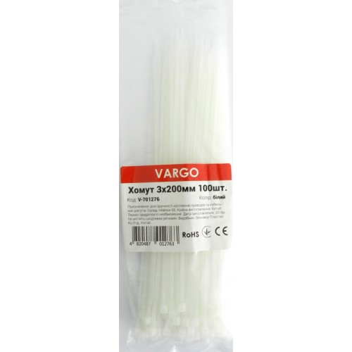 Хомут белый с кольцом VARGO 5×200мм 100шт (109543), Качество