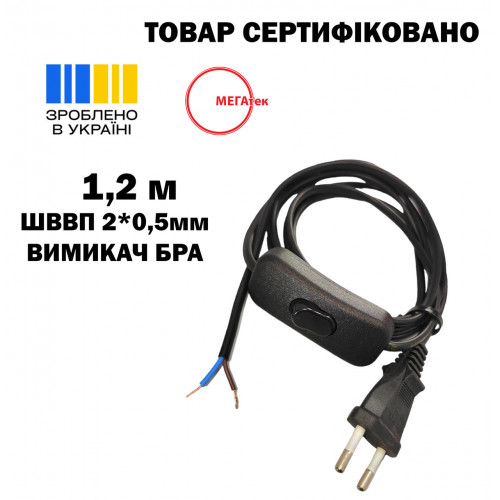 Шнур-бра с вилкой МЕГАтек ШВВП 2*0,5 черный 1,2 м
