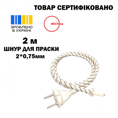 Шнур с вилкой для утюга МЕГАтек ПВС 2*0,75 белый 2 м