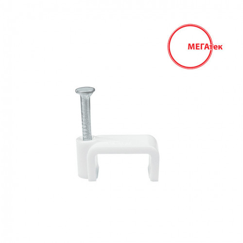 Кабельная клипса МЕГАтек (скоба с гвоздем) плоская 5 мм белая (100шт)