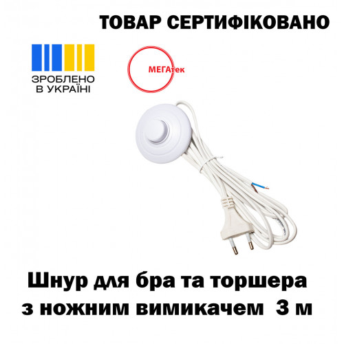 Шнур для бра и торшера с ножным выключателем МЕГАтек ШВВП 2*0,5 белый 3 м