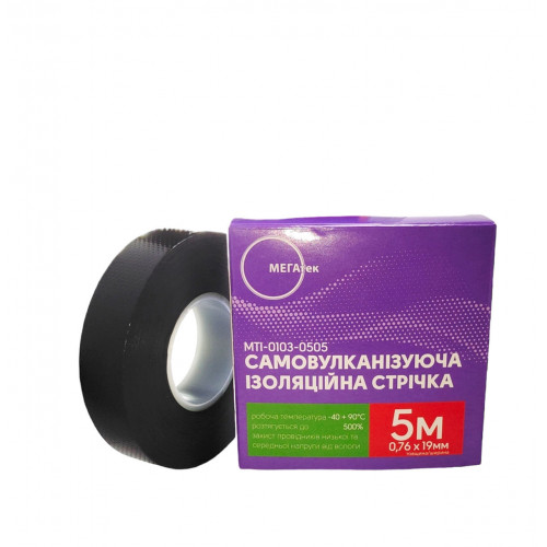 Самоулканизирующая изолента МЕГАтек 5 метров черная 0,76*19 огнестойкая МТИ-0103-0505