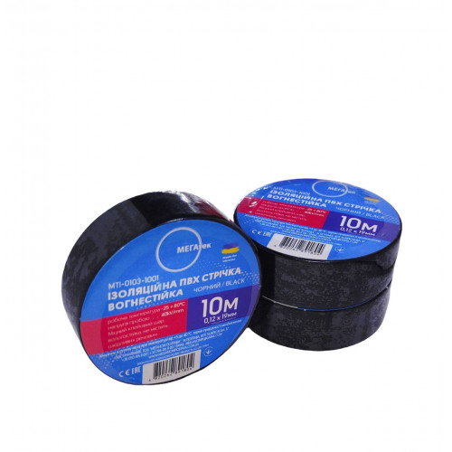 Изоляционная ПВХ лента МЕГАтек 10метров черная 0,12*19 огнестойкая МТИ-0103-1001