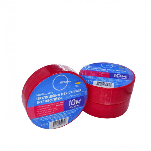 Изоляционная ПВХ лента МЕГАтек 10 метров красная 0,12*19 огнестойкая МТИ-0103-1011