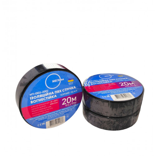 Изоляционная ПВХ лента МЕГАтек 20 метров черная 0,12*19 огнестойкая МТИ-0103-200