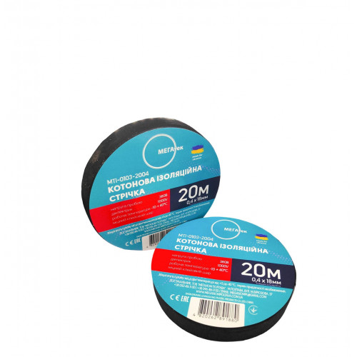 Котоновая изоляционная лента МЕГАтек 20 метров черная 0,4*18 огнестойкая МТИ-0103-2004