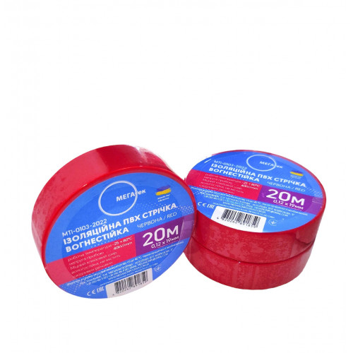 Изоляционная ПВХ лента МЕГАтек 20 метров красная 0,12*19 огнестойкая МТИ-0103-2022