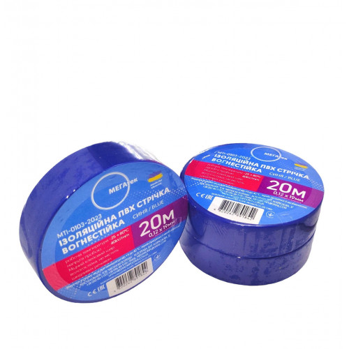 Изоляционная ПВХ лента МЕГАтек 20 метров синяя 0,12*19 огнестойкая МТИ-0103-2023