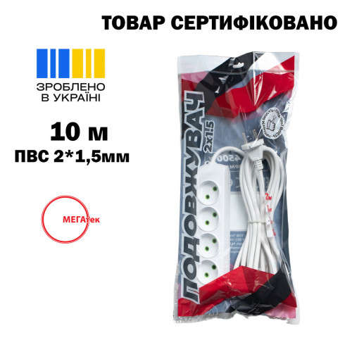 Удлинитель МЕГАтек 4 гнезда 10 м б/у ПВС 2*1,5 МТП-0106-1011 Производитель: МЕГАтек Тип: удлинитель Количество розеток: 4 шт Длина шнура: 10 м Напряжение: 220 В Сечение жил: 2x1.5 мм² Напряжение: 220~250В Номинальный ток: 16А Удобное подключение провода Класс защиты IP20 Заземление: нет Произведено в Украине Представительство в каждом месте Украины Товар сертифицирован Удлинитель на колодке позволяет подключать устройства в местах удаленных от стационарных розеток в бытовых условиях эксплуатации. Предназначен для использования в электрической сети 220 В для питания устройств с максимальной суммарной мощностью погрузки 3,5 кВт. Корпус имеет класс защиты IP20. Удлинитель на колодке МЕГАтек станет отличным помощником в доме, офисе.