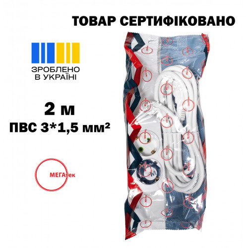 Удлинитель МЕГАтек 2 гнезда 2 м с/с ПВС 3*1,5 МТП-0107-1001