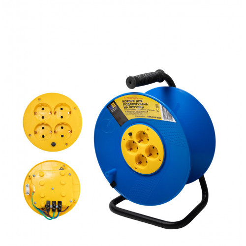 Корпус большой МЕГАТЕК для удлинителя на катушке с латунным контактом, зах.шторками, с выключателем от перенапряжения с/с