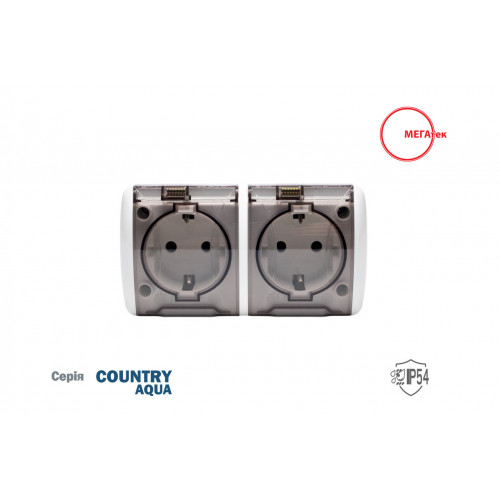 Розетка наружная 2-я ж/к с прозрачной крышкой IP54, Coutnry Aqua МЕГАтек MTAQ-0108-008