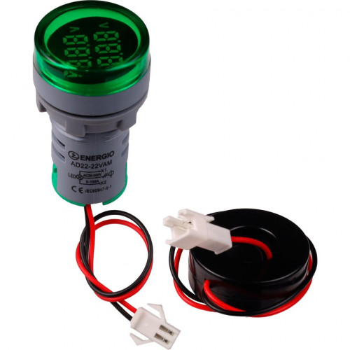 Индикатор с вольтметром и амперметром ENERGIO AD22-22VAMG зеленый