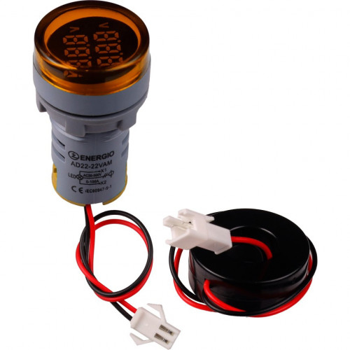Индикатор с вольтметром и амперметром ENERGIO AD22-22VAMY желтый