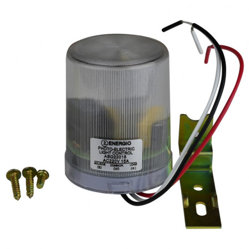 Сумеречный датчик выполнен в пластмассовом корпусе, состоящем из основания, где размещается электронная плата, и защитного кожуха. Монтаж выполняется с помощью входящей в стандартную комплектацию крепежной пластины. Для коммутации применяется электромеханическое реле.