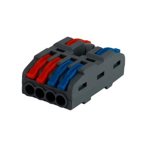 Альтернативным способом монтажа является применение быстрозажимных клеммников. Клеммные зажимы "Ваго" имеют целый ряд неоспоримых преимуществ при выполнении электромонтажных работ:Возможность соединения алюминиевых и медных проводов. Соединение проводов разных диаметров от 0,08 до 4,0 кв. мм.Использование многожильных проводов.Номинальный ток до 32А. Соединение до восьми проводов в одной группе. Быстрый и удобный монтаж без применения специальных инструментов.Изолированное электробезопасное соединение. К омпактный размер клеммника. Монтаж зажимов выполняется вручную: Концы проводов зачищаются на длину 10 мм.Поднимаются рычажки оранжевого цвета на клеммнике "Ваго", зажим открывает отверстие пружинного контакта. Зачищенные концы проводов до упора вставляются в отверстия клеммы.Рычажки опускаются в исходное положение, отпуская пружину контакта и зажимая провод.
