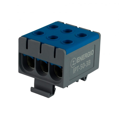 Клемма вводная силовая ENERGIO IPT 50мм2 на DIN-рейке тройная синяя