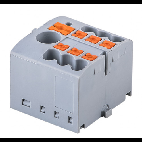 Распределительный блок, блоки можно шунтировать между собой, используя отверстия клеммы, подходящие перемычки см. в принадлежностях. Базовая клемма с питанием, номинальное напряжение: 450 В, номинальный ток: 24 A, тип подключения: Зажимы Push-in. Отвод. cечение: 0,14 мм2 - 4 мм2. Зажимы Push-in. Групповое подключение. Расчетное сечение: 6 мм2, cечение: 0,5 мм2 - 10 мм2, тип монтажа: крепление защелками на базе PTFIX-NS35/35A