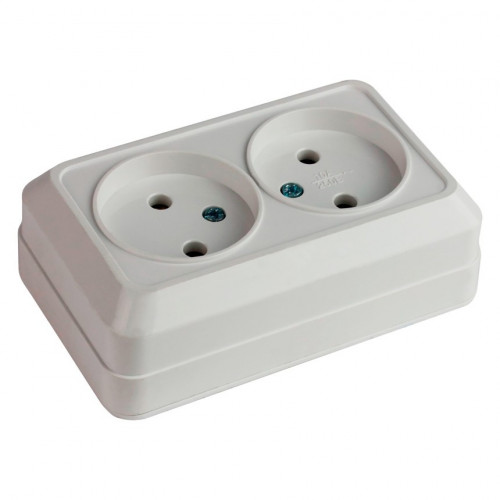 Розетка белая двойная накладная без заземления предназначена для внутренних сетей переменного тока, напряжением до 250В. Контактная группа – латунь. Количество вводов в гнезде: 2.