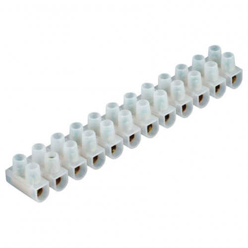 Клеммная колодка — электроустановочное изделие, предназначенное для соединения проводов. Представляет собой пару (или больше) металлических контактов с узлами крепления к ним проводов в диэлектрическом корпусе.Клеммные колодки иприменяются для винтового соединения проводников и изоляции места соединения и предназначены для удобства монтажа электрических проводов в цепях управления, сигнализации, освещения и др. Конструкция колодок во всех случаях одинакова: в ячейках корпуса устанавливаются латунные трубки с резьбовыми отверстиями с обеих сторон.Трубки могут быть различного диаметра, в зависимости от того, для соединения какого сечения проводов предназначена колодка.