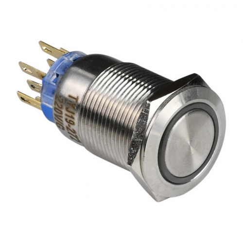 Кнопка металлическая ENERGIO TYJ19-272 с подсветкой без фиксации 220В зеленая 2NO+2NC