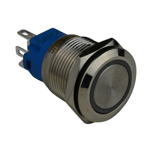 Кнопка металлическая ENERGIO TYJ19-371 с подсветкой с фиксацией 220В зеленая NO+NC