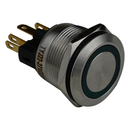 Кнопка металлическая ENERGIO TYJ22-271 с подсветкой без фиксации 220В зеленая NO+NC