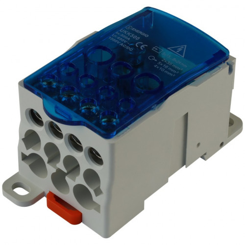 Распределительные блоки применяются в качестве надежных клеммных зажимов при создании упорядоченных систем распределения и оборудовании главной заземляющей шины в распределительных шкафах. Распределительные блоки применяются в сетях напряжением до 1000 В частотой 50 Гц, при температуре окружающего воздуха от минус 40 до плюс 70 °С. Устанавливаются на DIN-рейку или на монтажную панель в силовых шкафах и любых распределительных щитах. Блоки изготовлены из луженой меди, его корпус – из пластика, который не поддерживает горение и обладает отличными электроизоляционными свойствами. Степень защиты IP20.