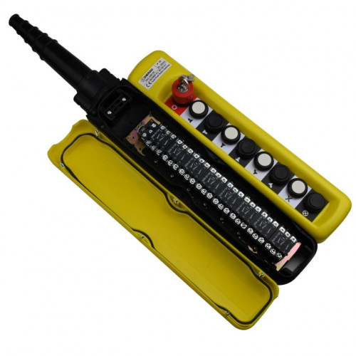 Пульт имеет корпус из полипропилена (пылевлагозащищенный), степень защиты IP65, малые габариты и вес. Используются для управления грузоподъемной техникой (краны, тали, тельферы, лебедки). Температура эксплуатации от -25 до +55 С.