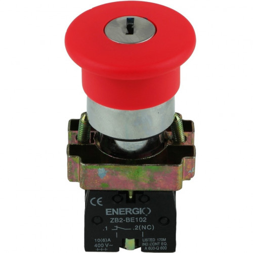 Кнопка ENERGIO XB2-BS142 грибок 40мм с ключом красная NC
