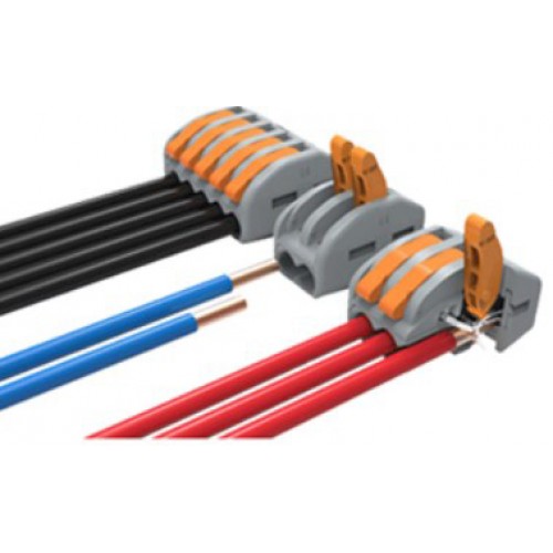 Надежность: благодаря пружинному механизму клеммы обеспечивают надежный контакт проводов без риска их ослабления или разъединения.