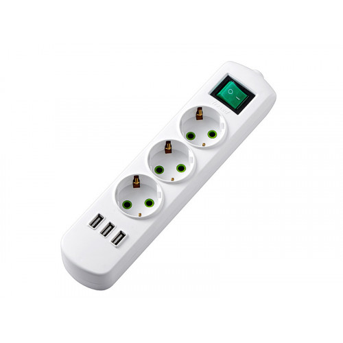 Колодка электрическая на 3 розетки с кнопкой и USB Lezard LETITIA