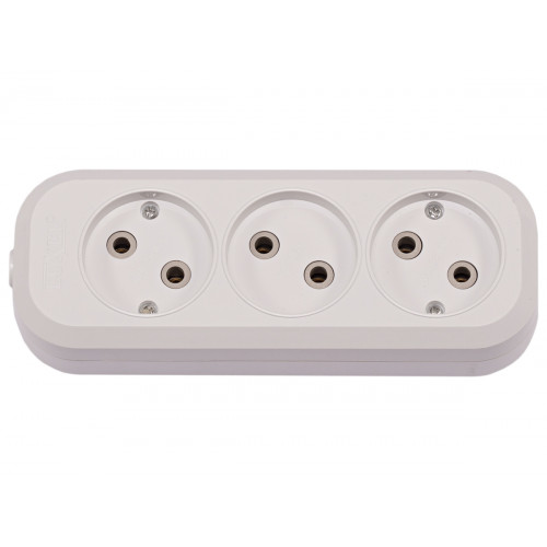 Используется для изготовления удлинителей необходимой длины, применяемых для подключения электроприборов в местах, удаленных от стационарных розеток, или их количество не позволяет произвести необходимое подключение к стационарным розеткам. Имеет 3 штепсельных гнезда. Контактная группа находится в защитном корпусе из негорючего поликарбоната. Используется в системах электропитания без заземляющего проводника.