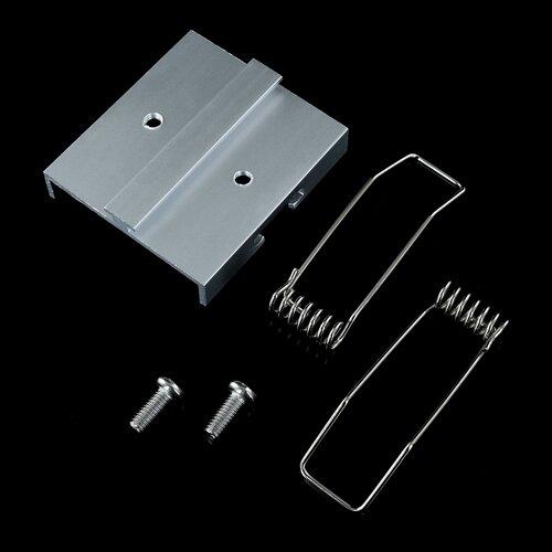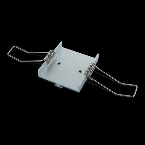 Этот комплект для встраиваемого крепления алюминиевого профиля шириной светодиодной подсветки имеет ширину 55 мм. Изделие состоит из одной клипсы и двух пружин, а также пары миниатюрных винтов.