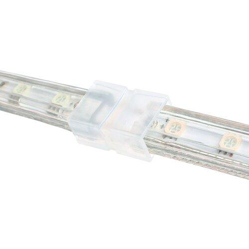 Данный коннектор предназначен для соединения светодиодных лент. Он имеет два разъема для присоединения гибких плат категории RGB с диодами типа SMD5050. Рабочее напряжение модели – 220 В.