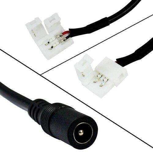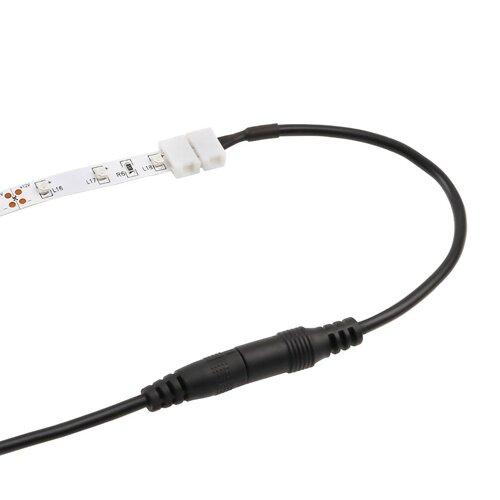 Этот ведущий коннектор типа «зажим-miniJack («мама»)» используется для подключения контуров светодиодной подсветки к питающим устройствам или соответствующим коннекторам. Он имеет длину 15 см и ширину 8 мм. Изделие состоит из штекера с отходной проволокой и зажимом на противоположном конце.