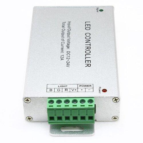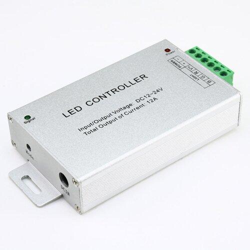 Контроллер RGB OEM 12А-RF-24 используется для управления яркостью, цветом и скоростью мерцания светодиодных лент, а также включение установленных производителем режимов. Мощность изделия составляет 144 Вт, выходная сила тока равна 12 А –; по 4 А на каждый из трех каналов. Номинальное напряжение работы – 12 В. Корпус имеет габариты 130х65х24 мм.