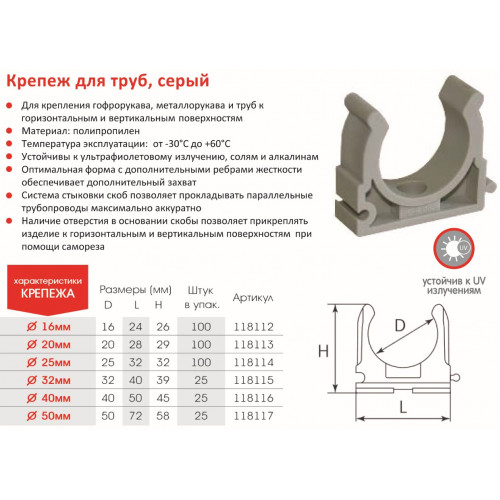 Надежность: прочная конструкция обеспечивает долговременную и устойчивую фиксацию труб разного типа – от водоснабжения до отопления и электропроводки.