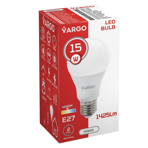 LED лампа VARGO A65 15W E27 4000K 1425lm (110520), Качество