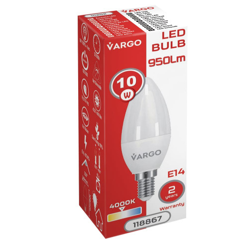 LED лампа VARGO C37 10W 4000K E14 950lm (118867), Качество