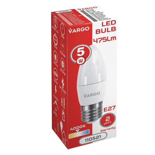 LED лампа VARGO C37 5W E27 4000K 475lm (110521), Качество