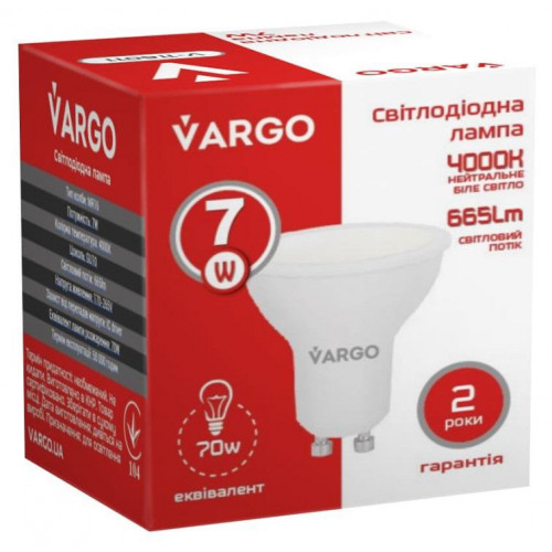 LED лампа VARGO GU10 7W 4000K 665lm (116011), Качество