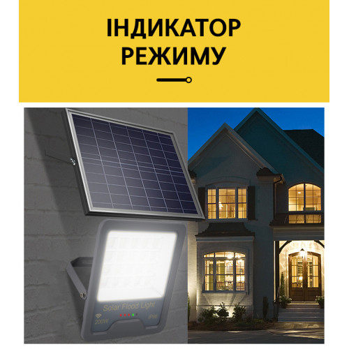 LED Прожектор VARGO на солнечной батарее 200W с датчиком движения Световой поток: 10000lm Аккумулятор: 3.7V, 15 000mAh Солнечная